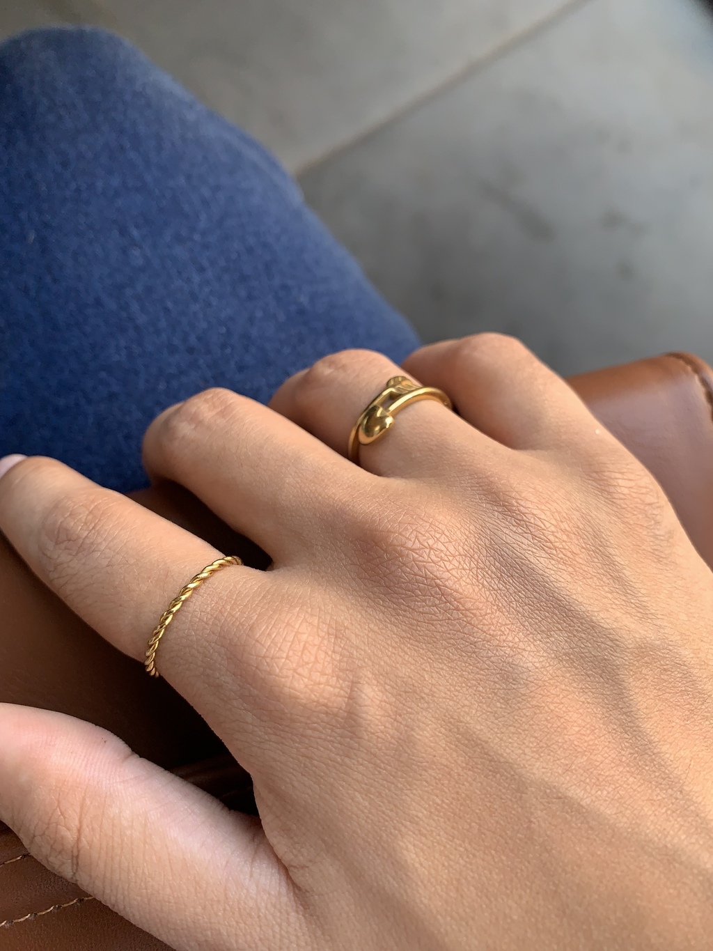 Versátil e coringa, o anel flecha love pode ser usado com qualquer look.