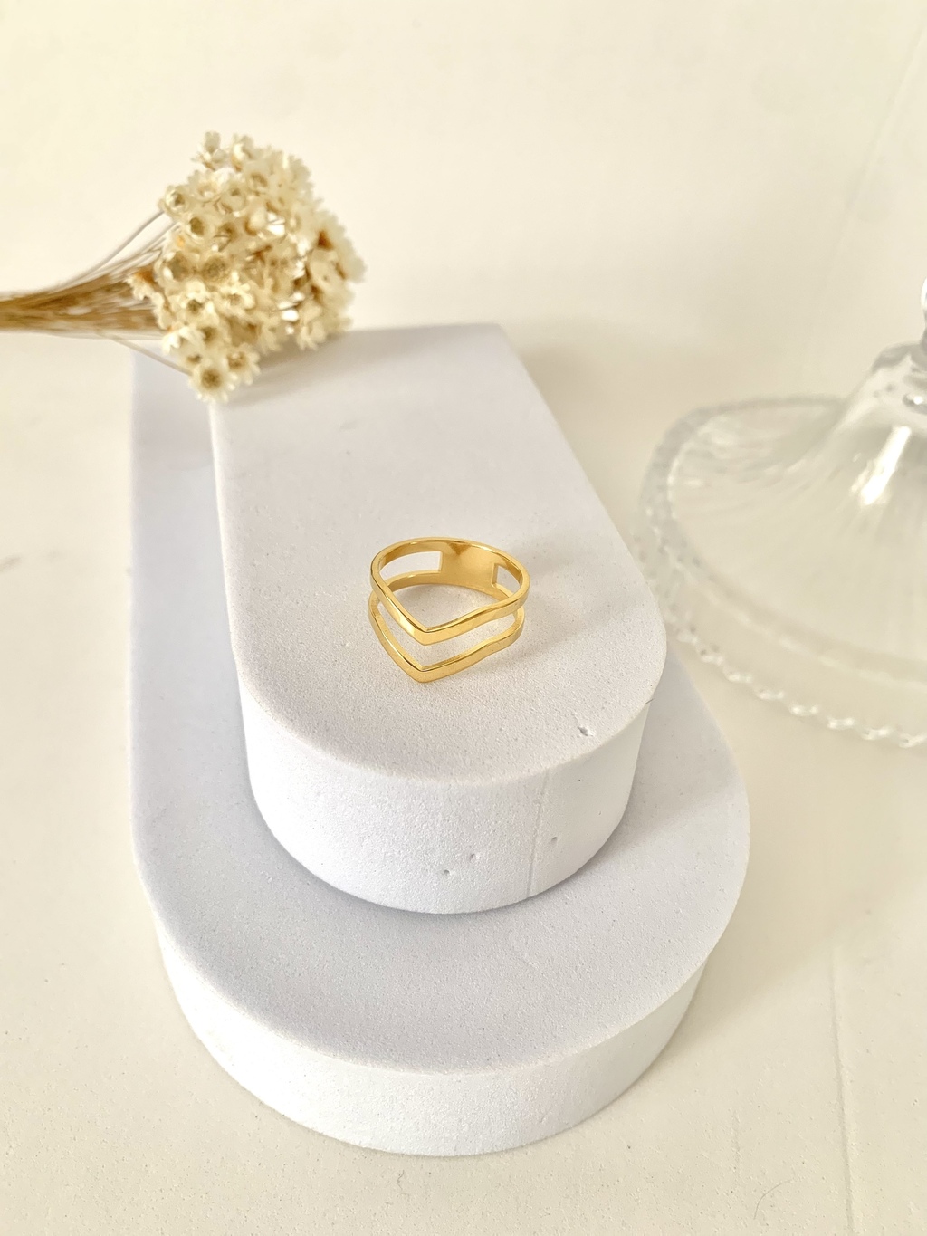 Versátil e coringa, o anél Seta dupla pode ser usado com qualquer look.
