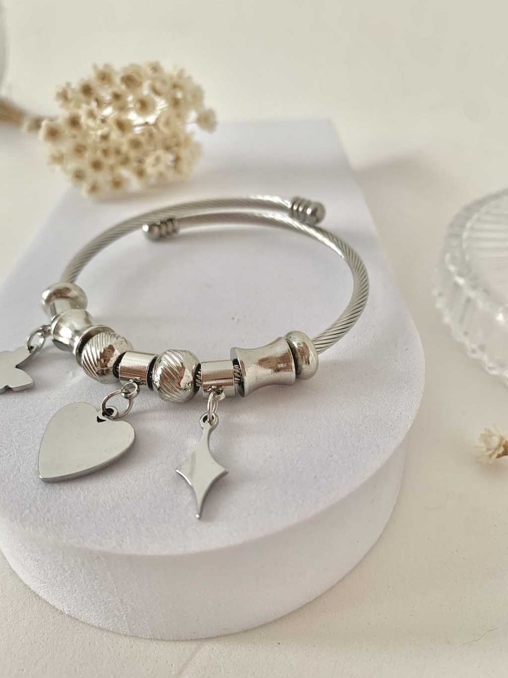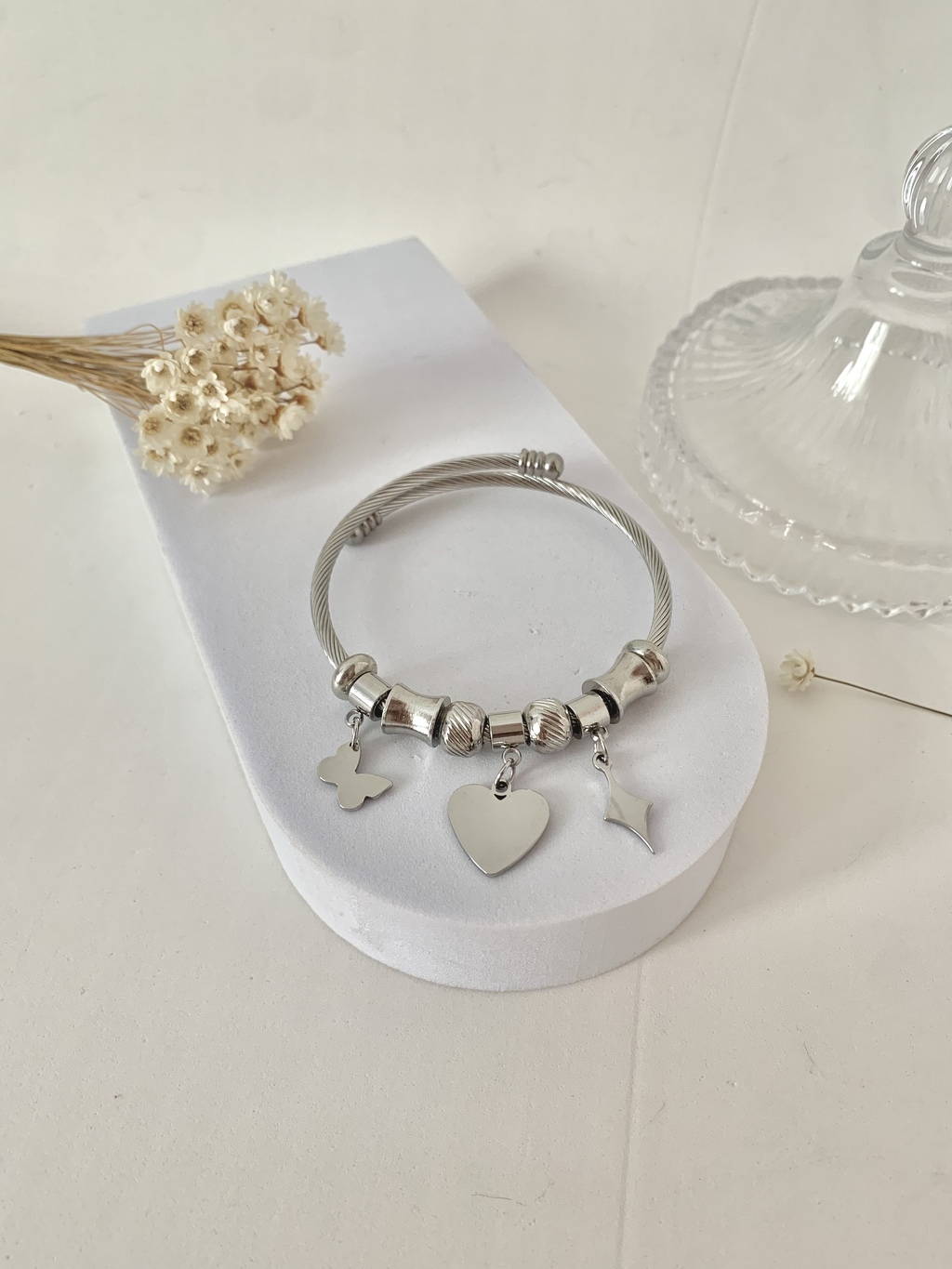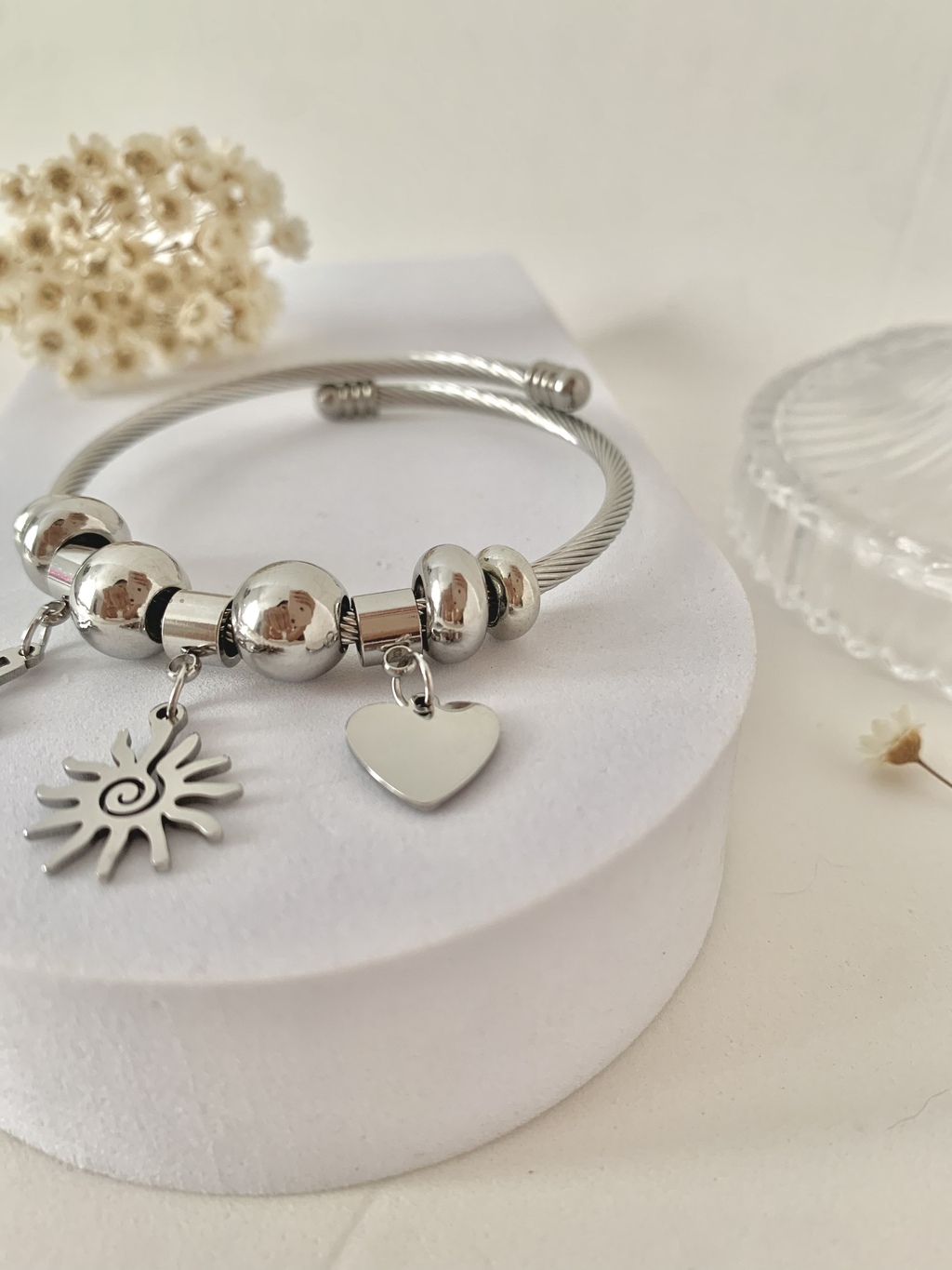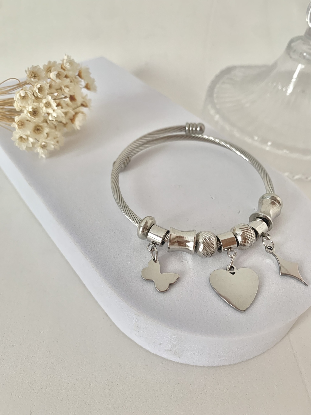 BRACELETE REGULÁVEL INSPIRAÇÃO PANDDORA* EM AÇO INOXIDÁVEL PRATA