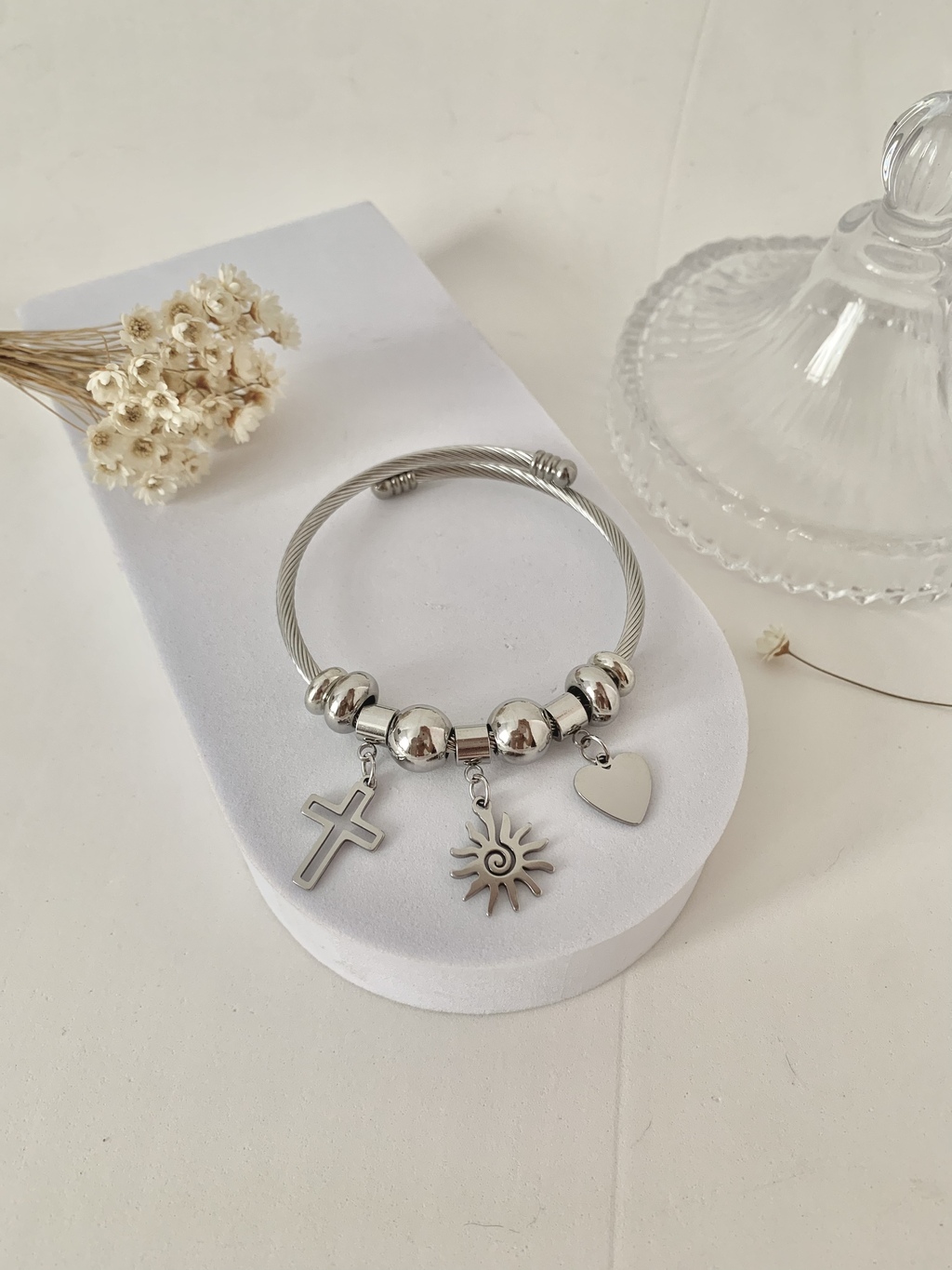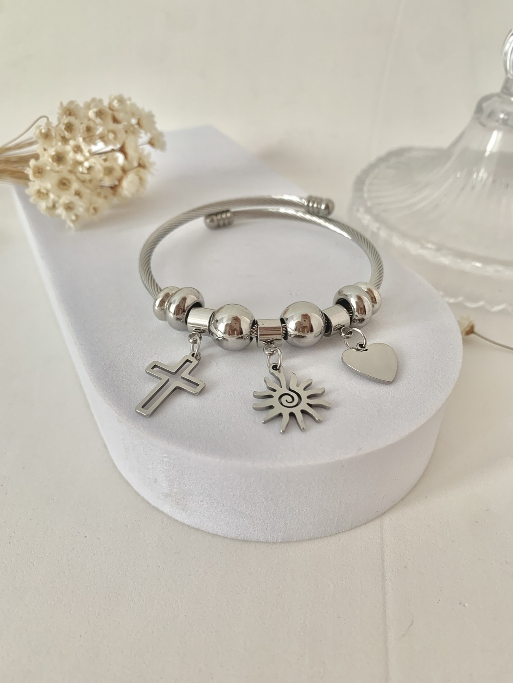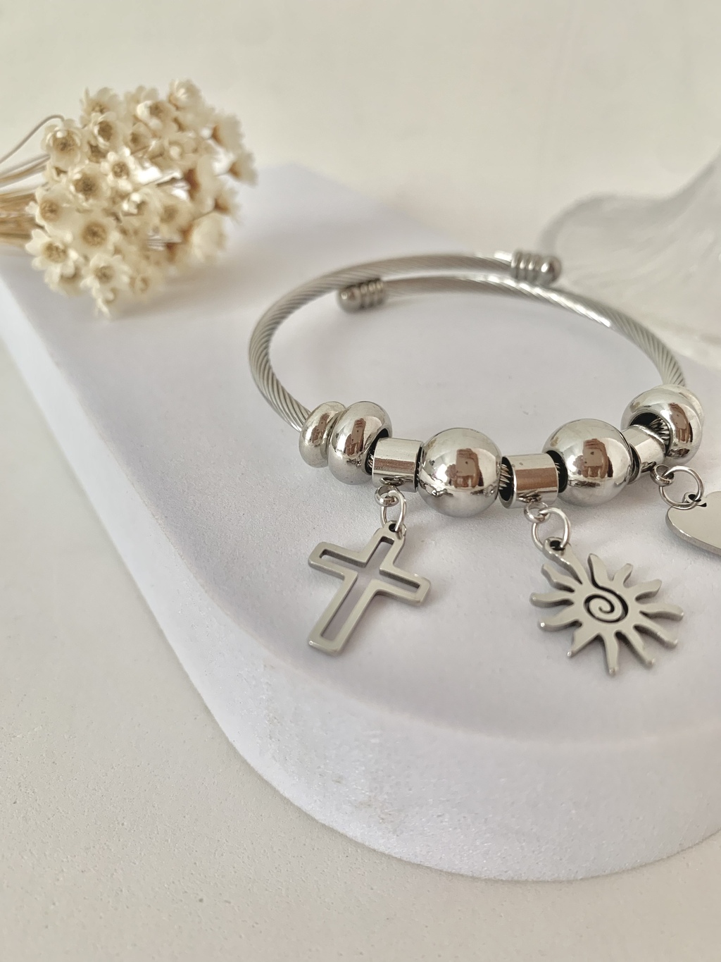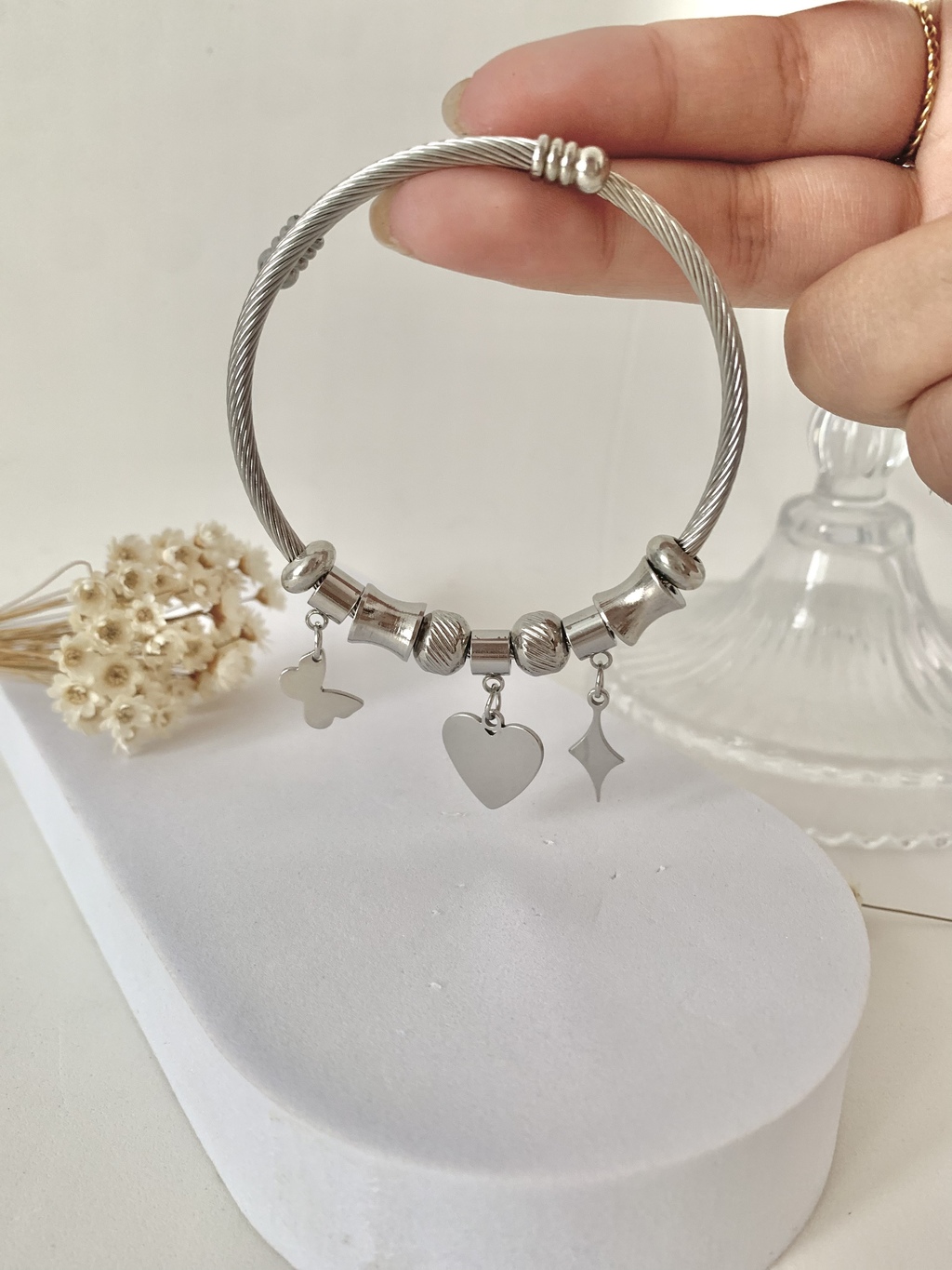 BRACELETE REGULÁVEL INSPIRAÇÃO PANDDORA* EM AÇO INOXIDÁVEL PRATA