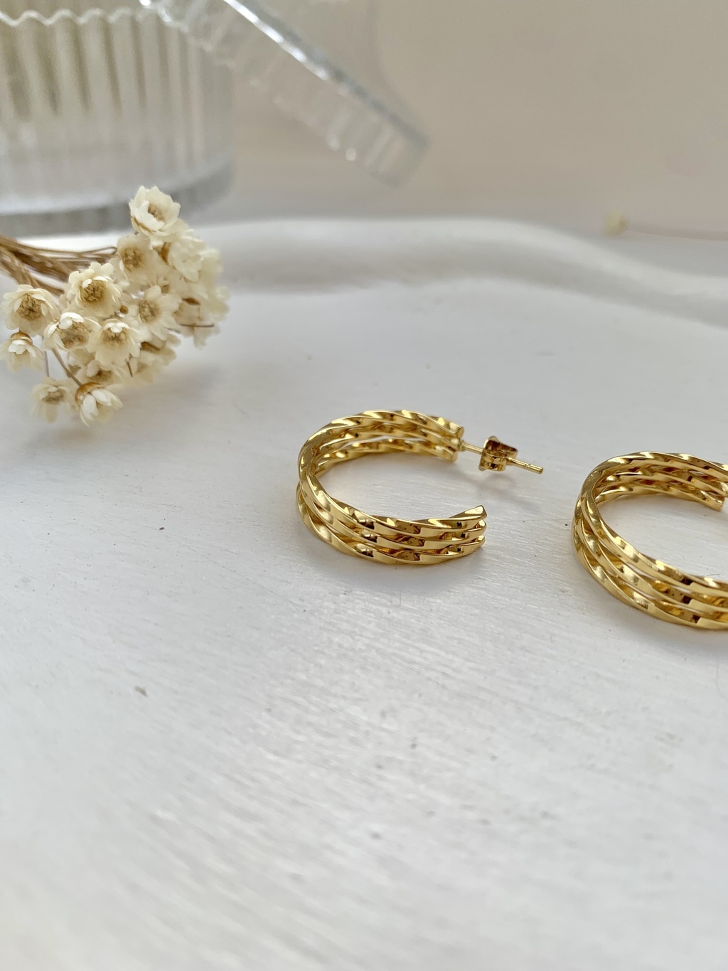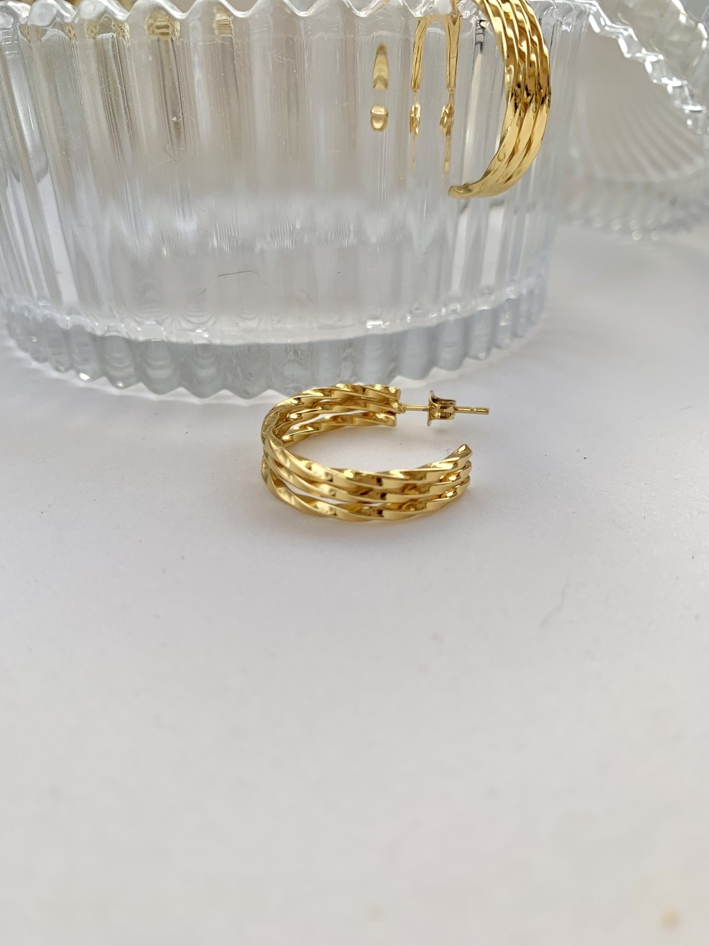BRINCO ARGOLA TRÊS FIOS TORCIDOS EM AÇO INOXIDÁVEL DOURADO