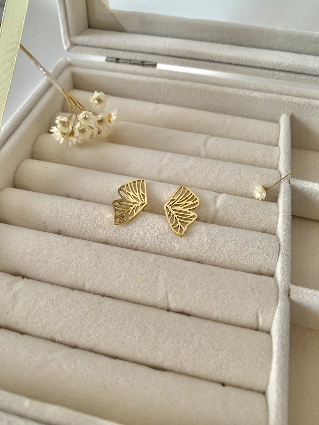 BRINCO ASAS DE BORBOLETA EM AÇO INOXIDÁVEL DOURADO