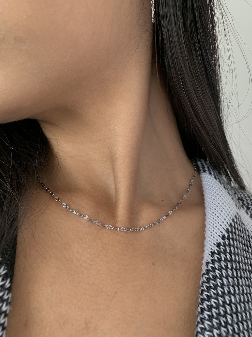 CHOKER ELOS CHAPADOS EM AÇO INOXIDÁVEL PRATA