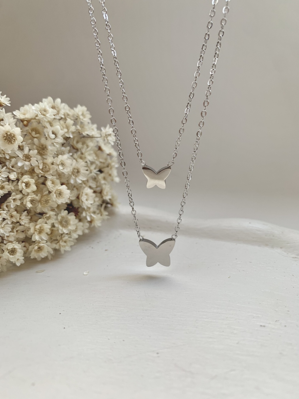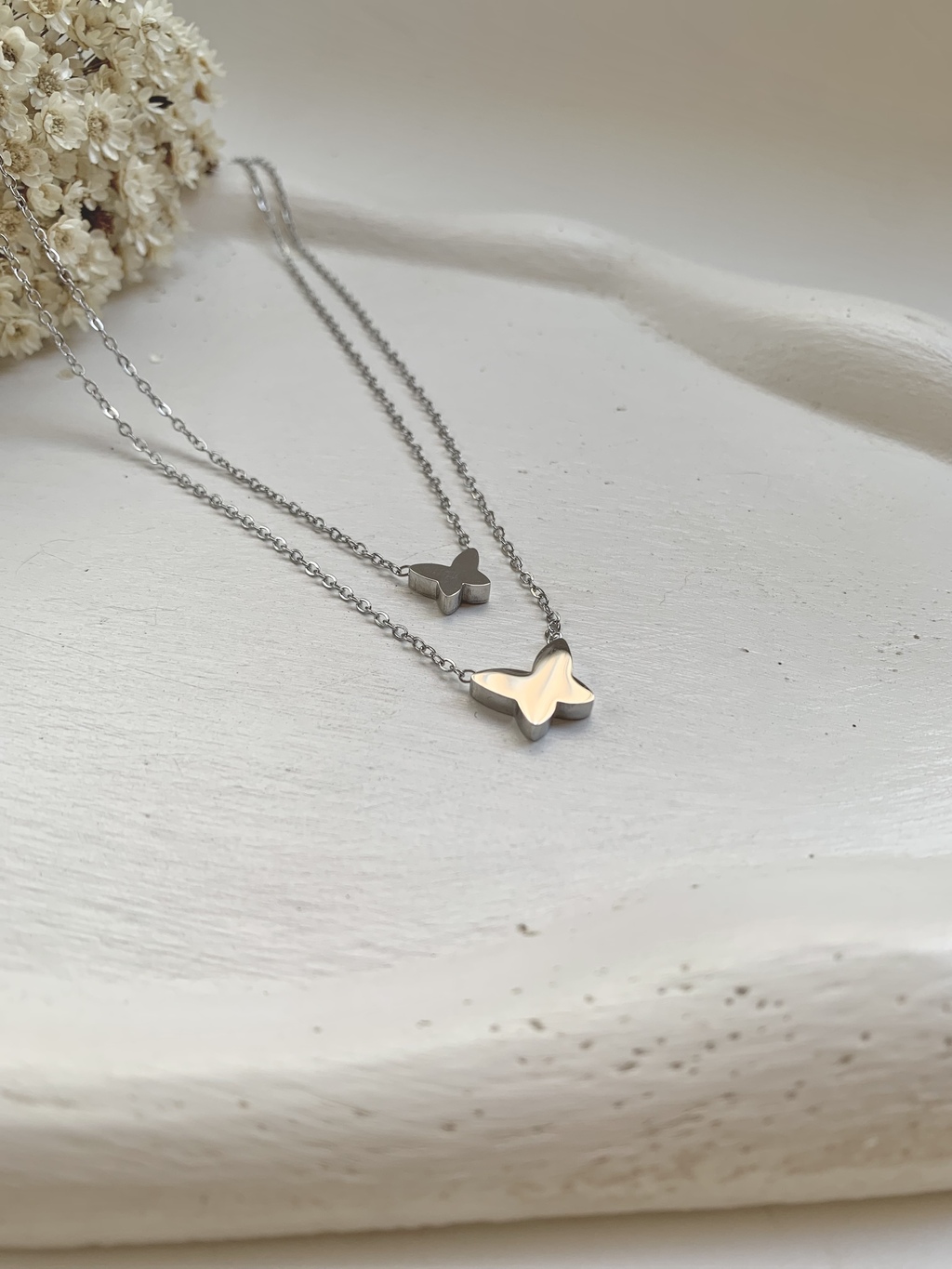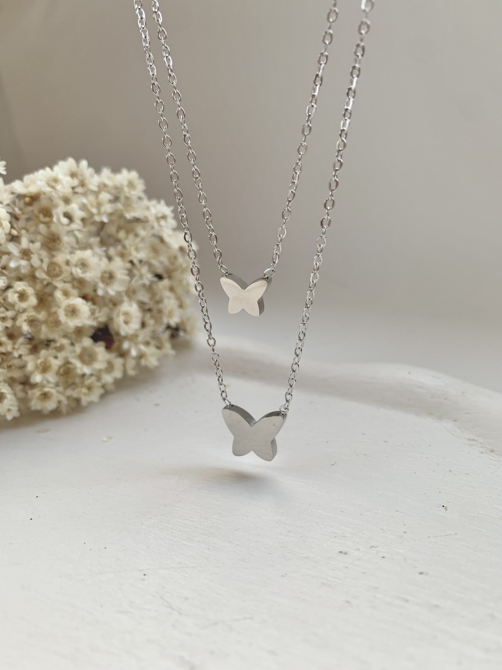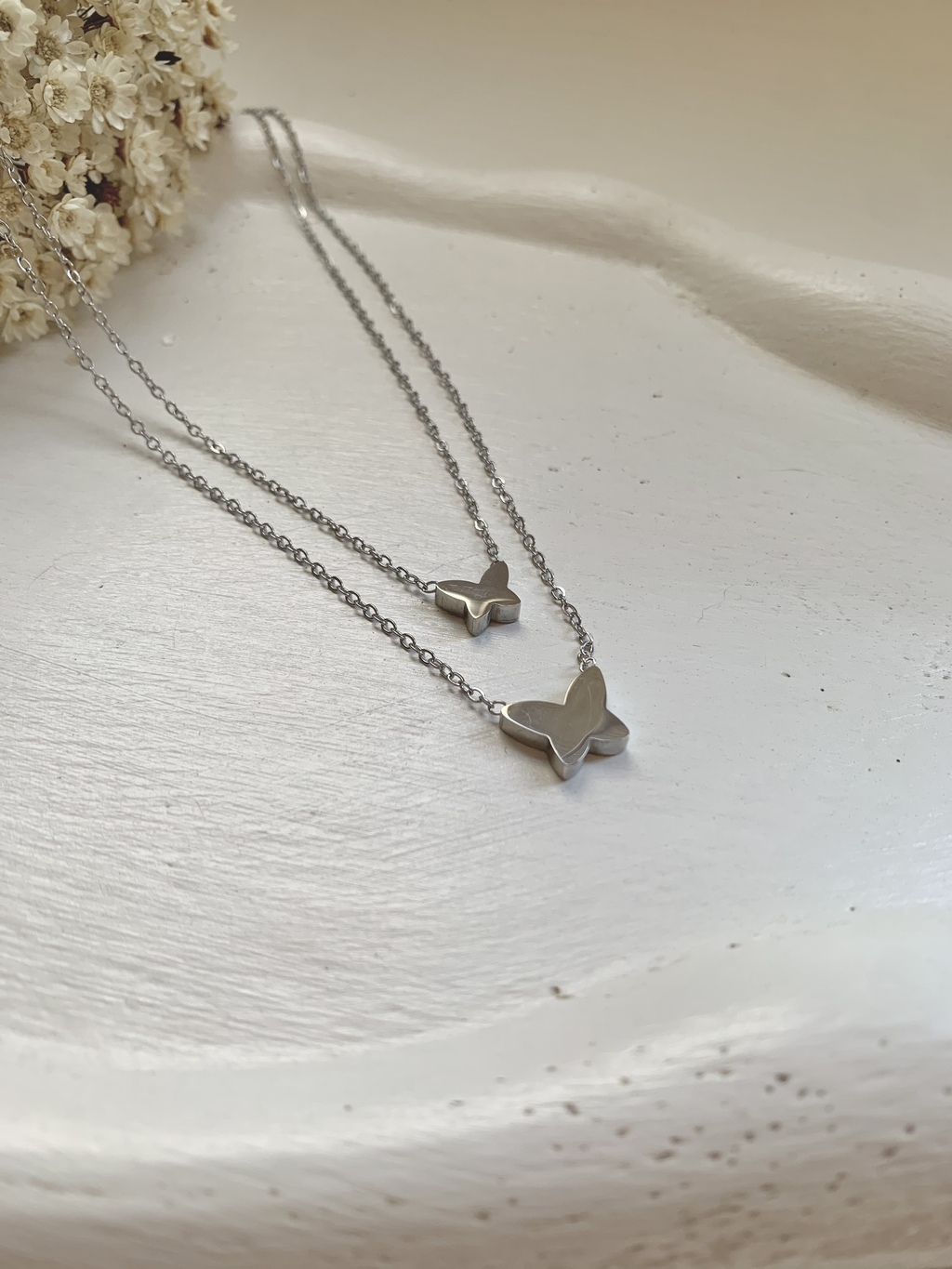 COLAR DUPLO BORBOLETA EM AÇO INOXIDÁVEL PRATA