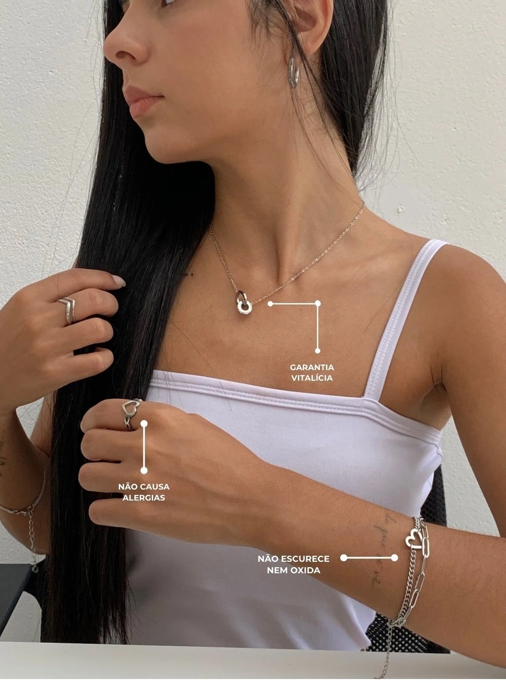 Possui garantia vitalícia contra escurecimento, oxidação e alergias.