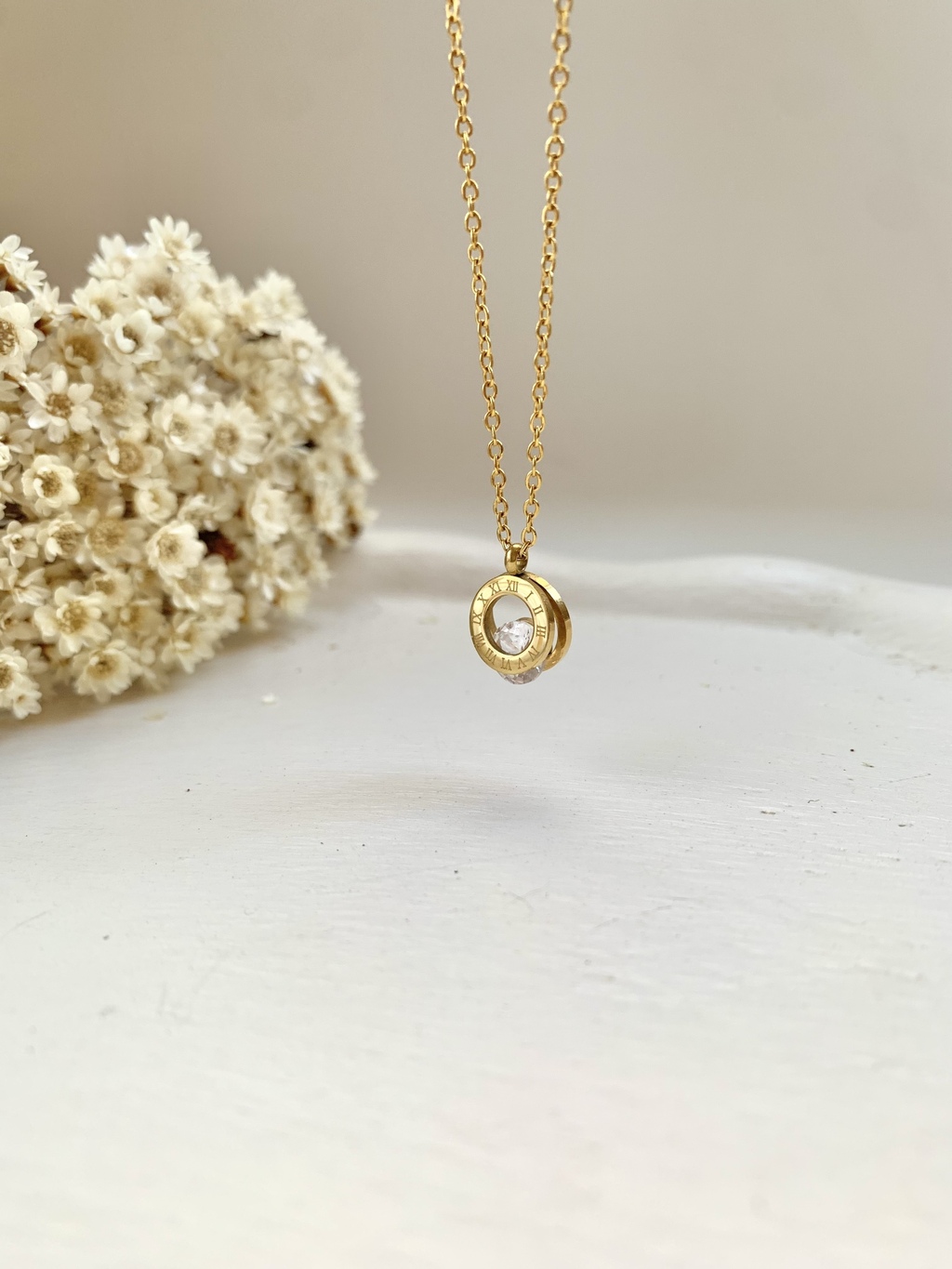 COLAR INSPIRAÇÃO CATIER COM ZIRCÔNIA EM AÇO INOXIDÁVEL DOURADO