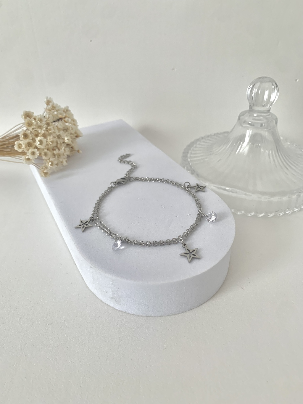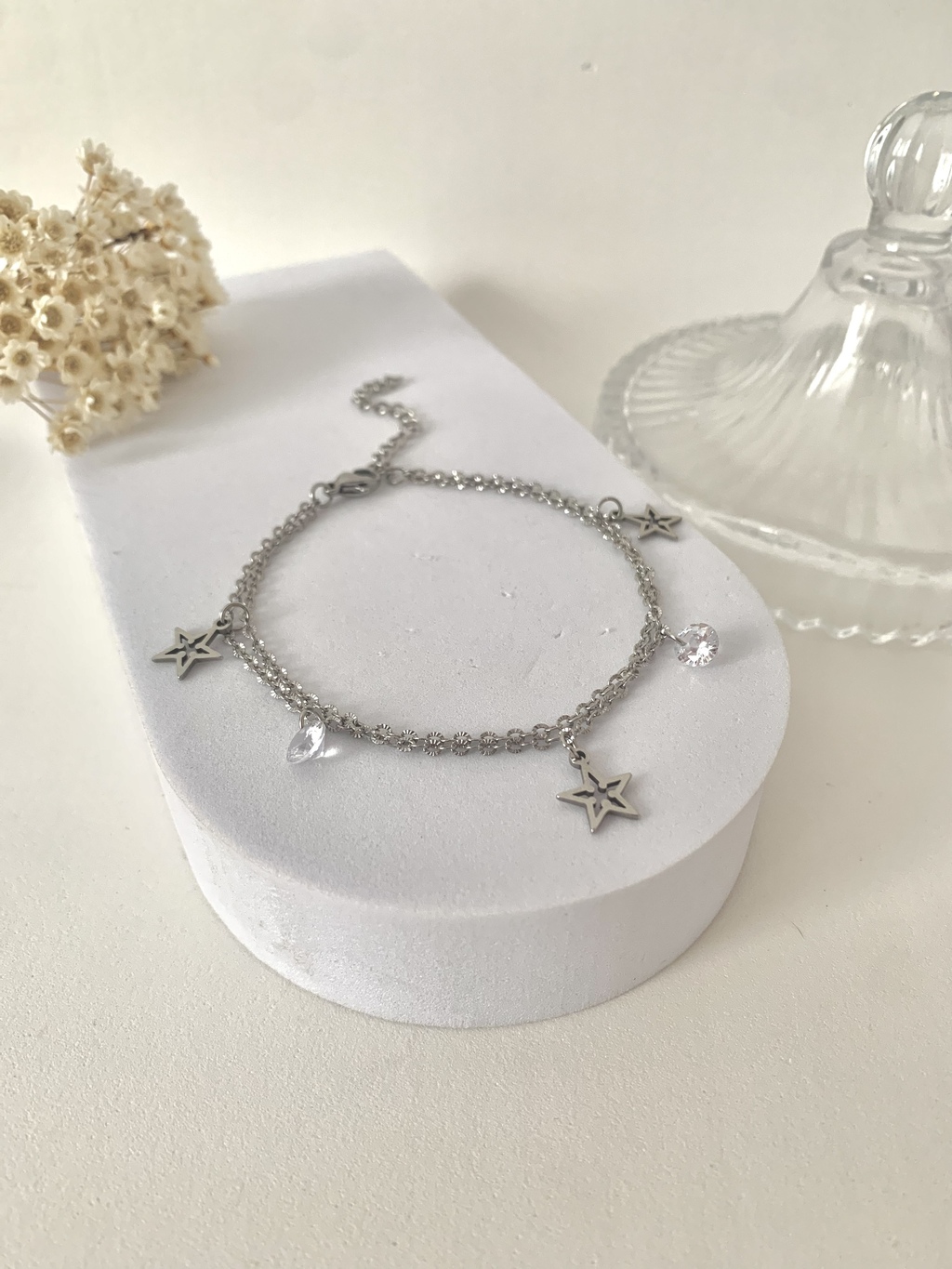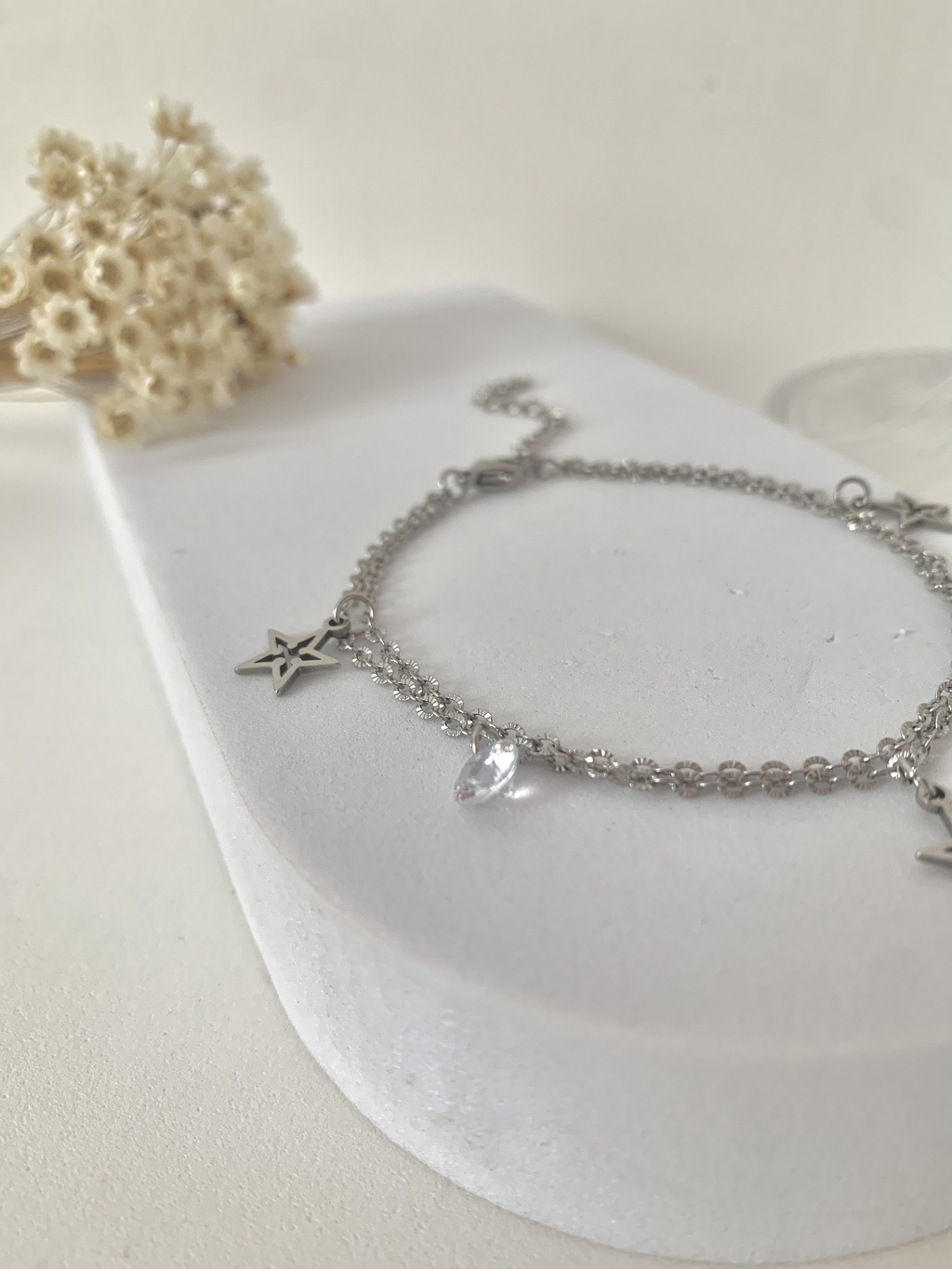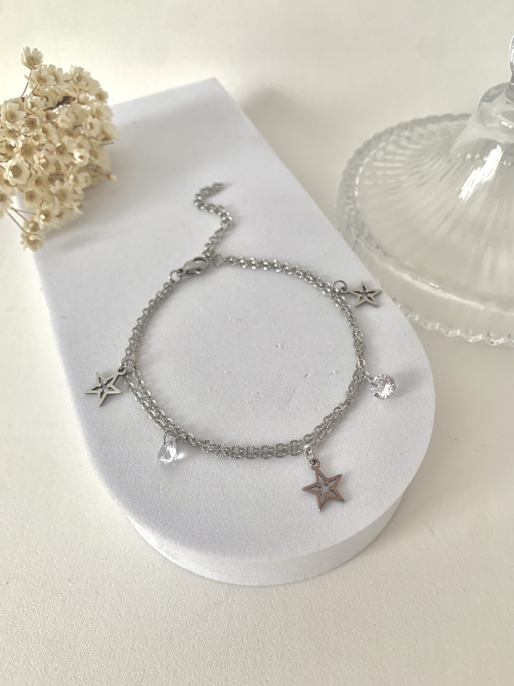 PULSEIRA DUPLA ESTRELA ZIRCÔNIA EM AÇO INOXIDÁVEL PRATA