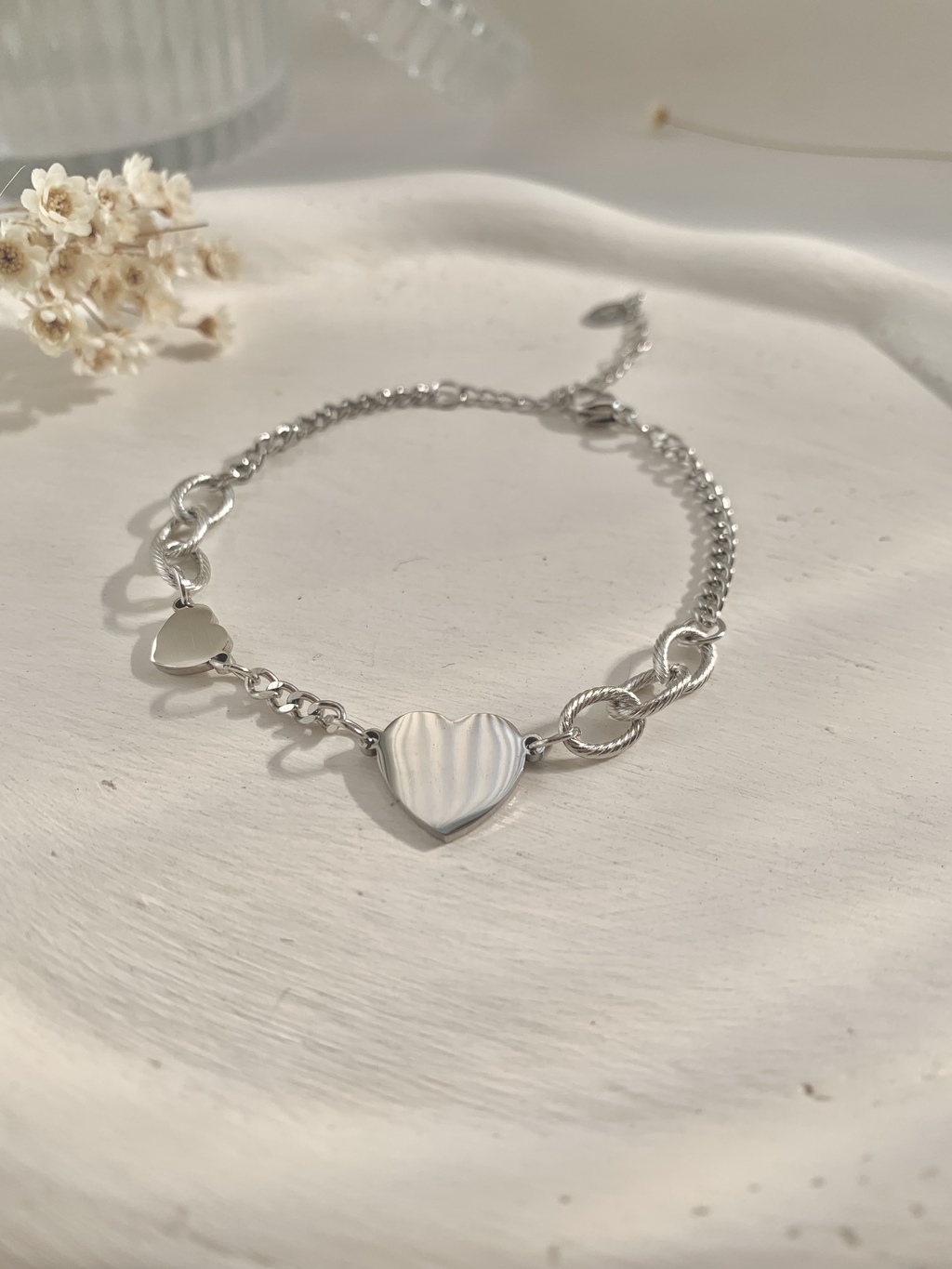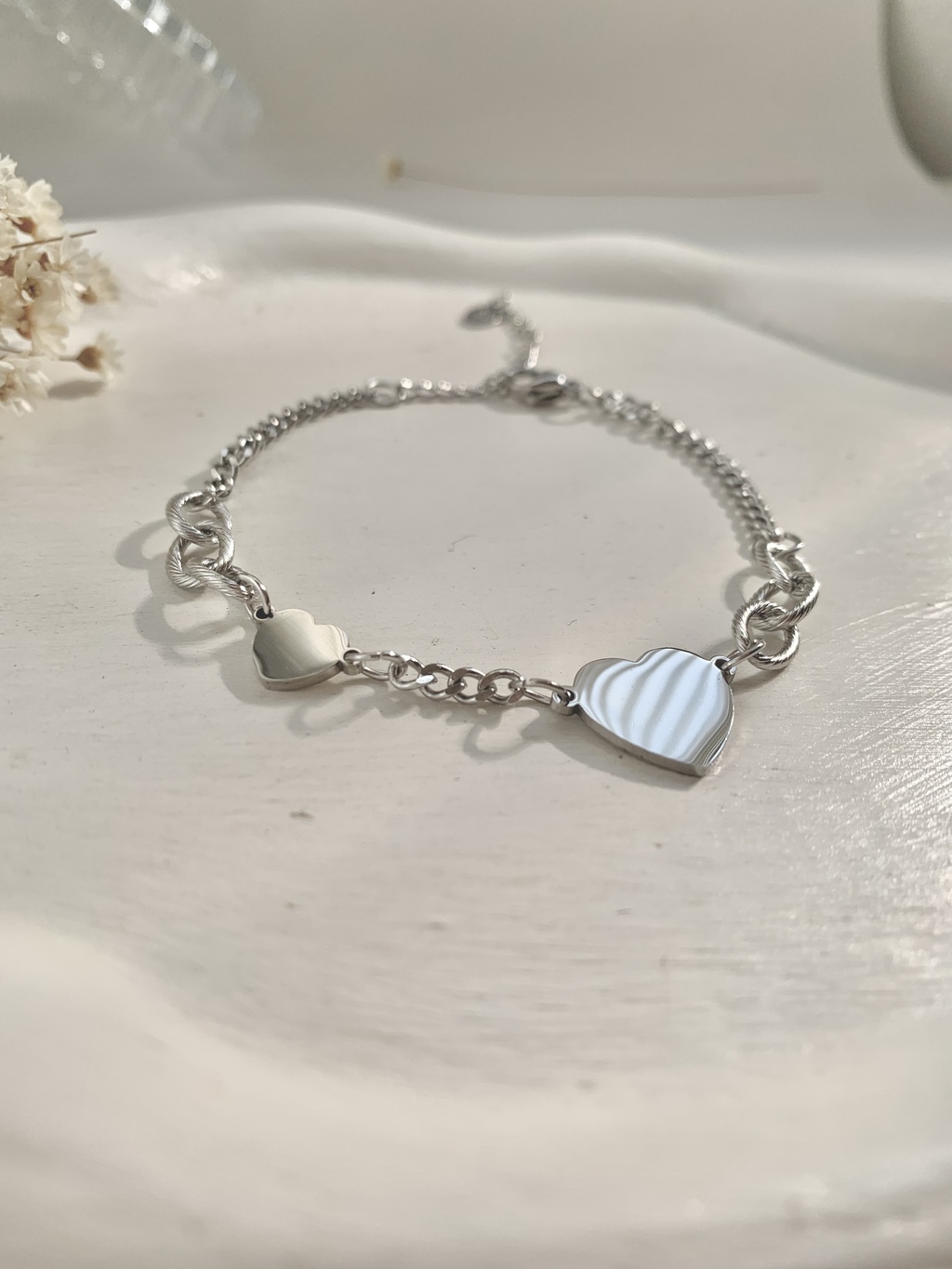 PULSEIRA MAXI DOIS CORAÇÕES EM AÇO INOXIDÁVEL PRATA