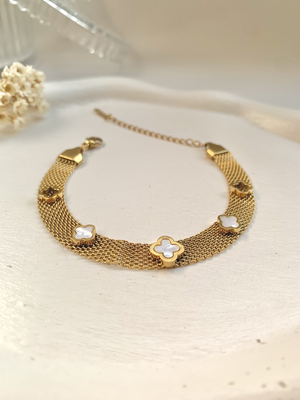 BRACELETE TREVO INSPIRAÇÃO VC EM AÇO INOXIDÁVEL DOURADO