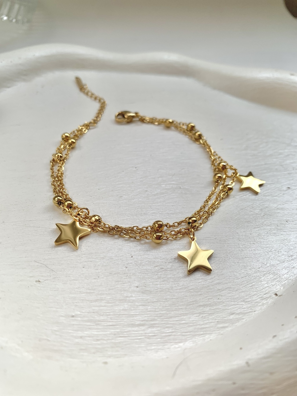 PULSEIRA TRIPLA ESTRELAS EM AÇO INOXIDÁVEL DOURADO