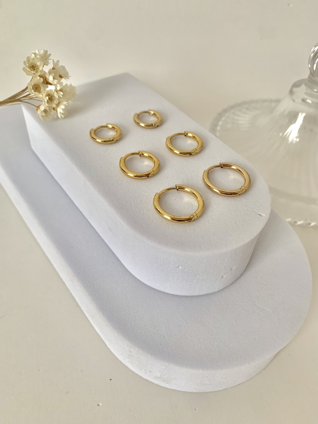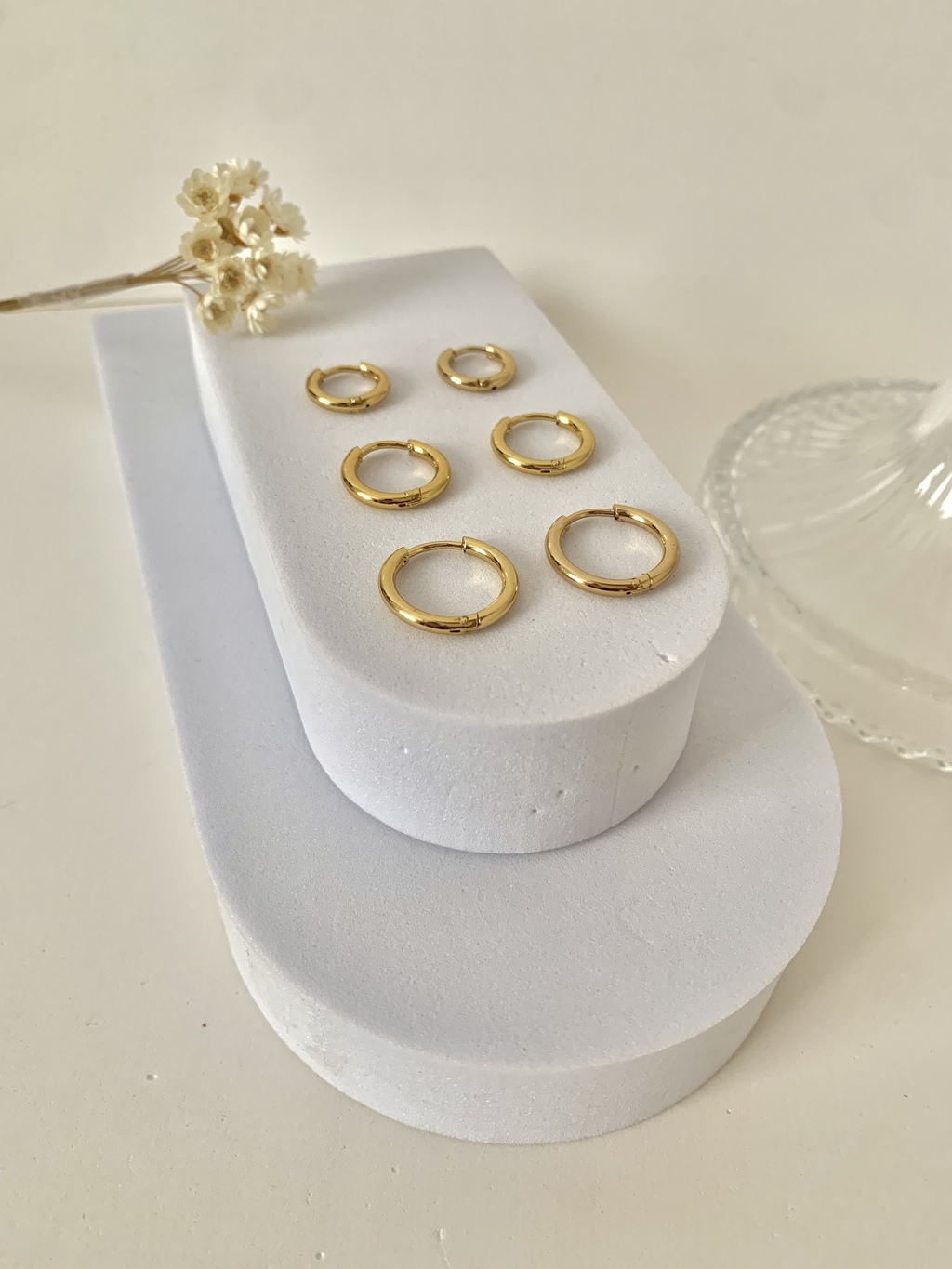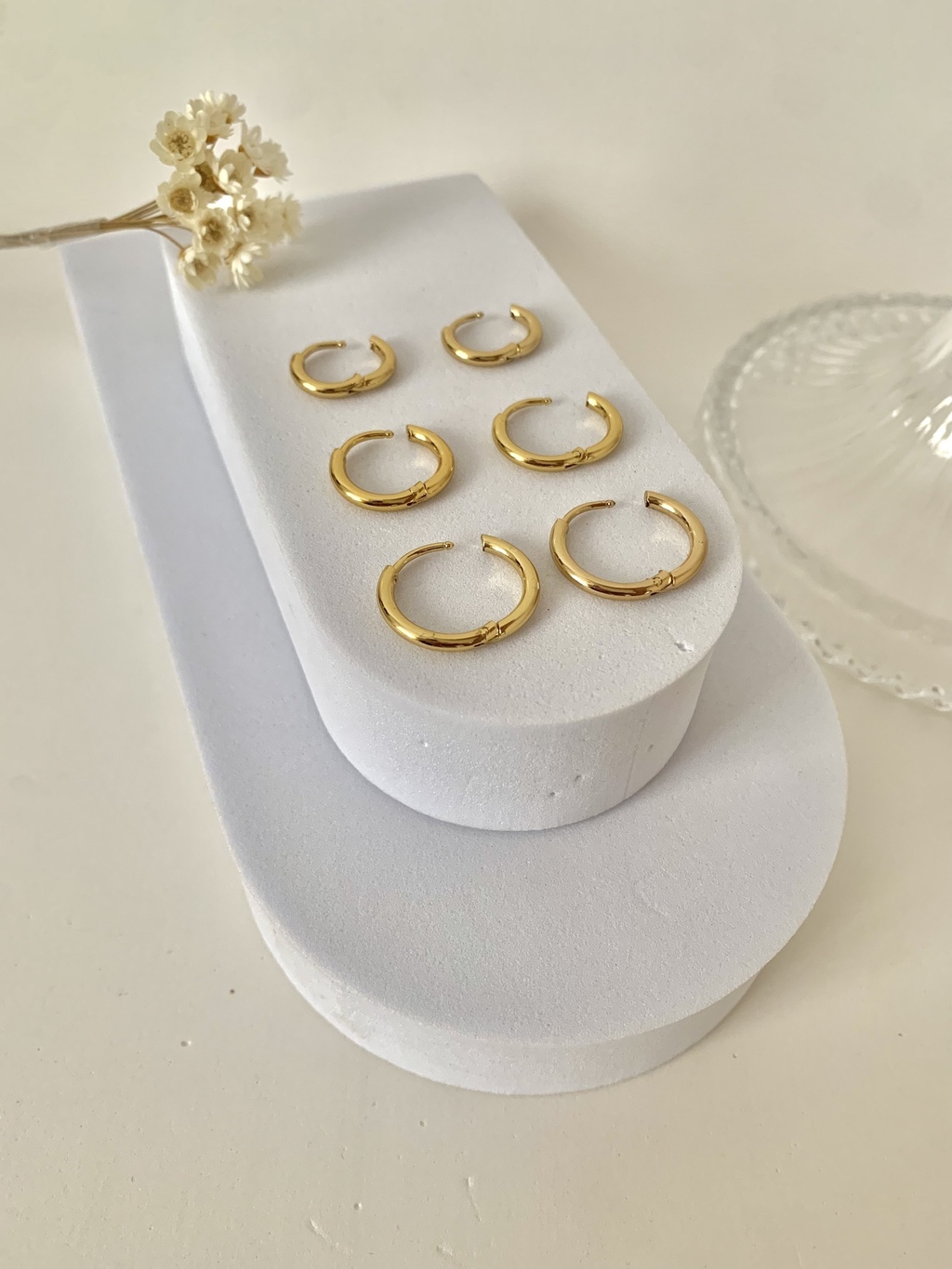 TRIO ARGOLAS CLICK P, M, G EM AÇO INOXIDÁVEL DOURADO
