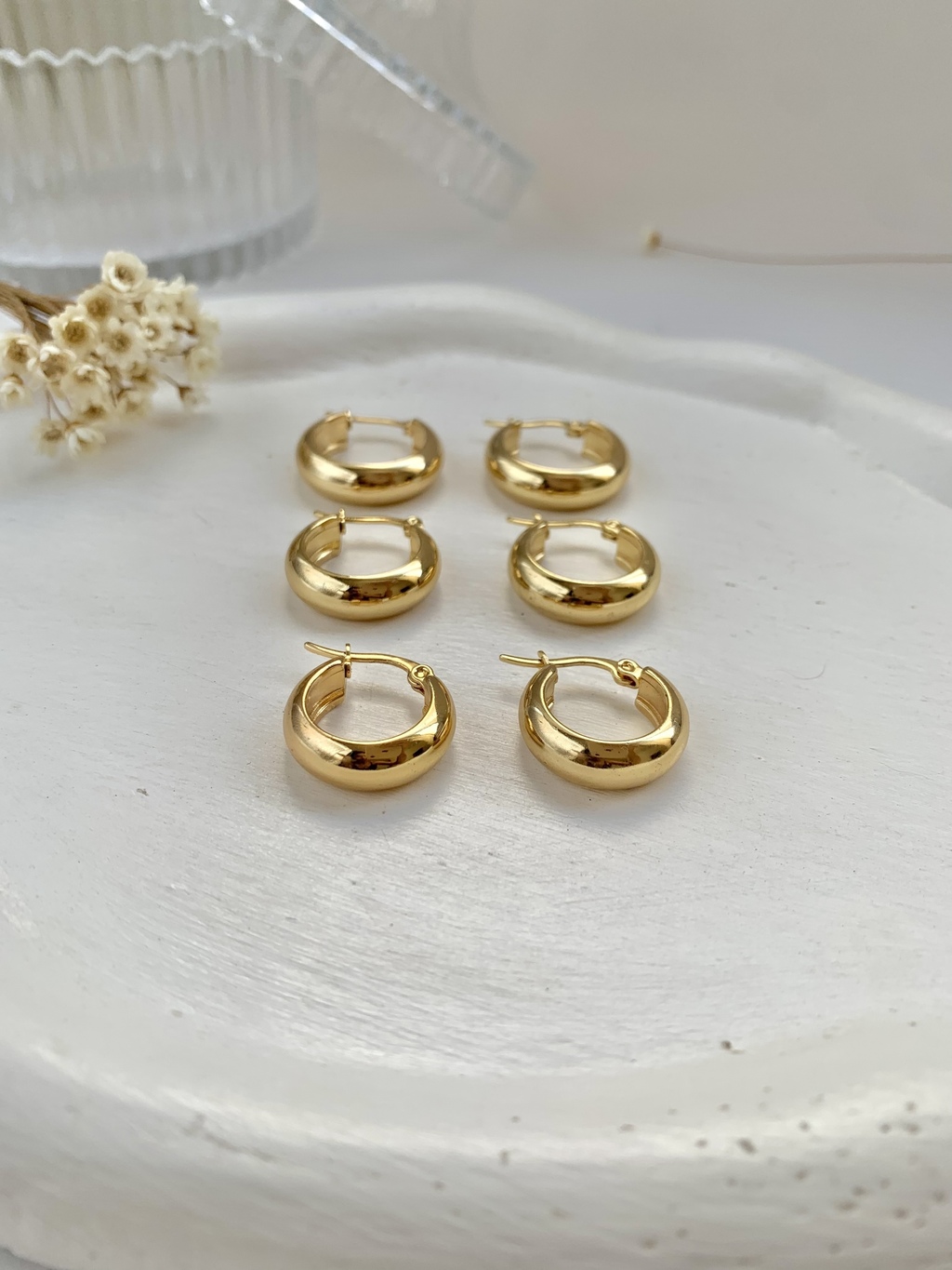 TRIO ARGOLAS MÁXI ABAULADAS EM AÇO INOXIDÁVEL DOURADO
