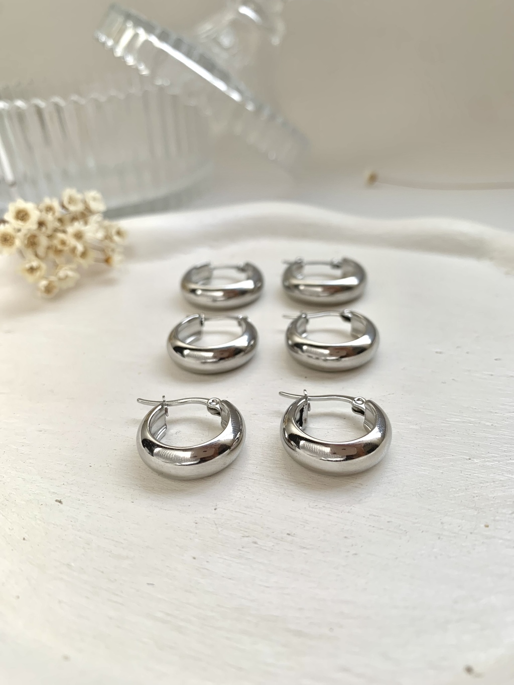 TRIO ARGOLAS MÁXI ABAULADAS EM AÇO INOXIDÁVEL PRATA